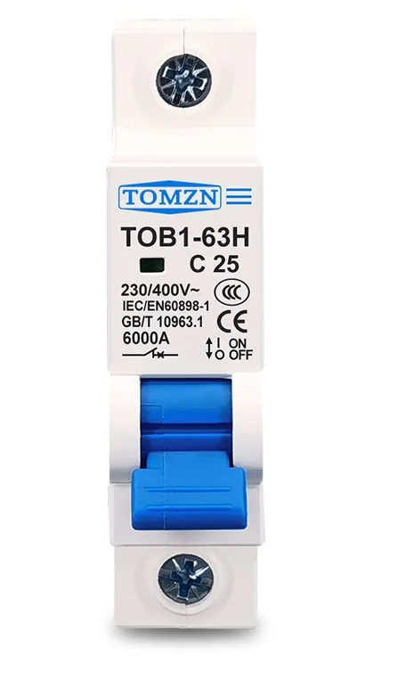 Tomzn AC Breaker MCB TOB1-63 Single Pole, 20A, 25A, 32A, 63A, C type 230/400V~ 50HZ/60HZ Miniature Circuit Breaker